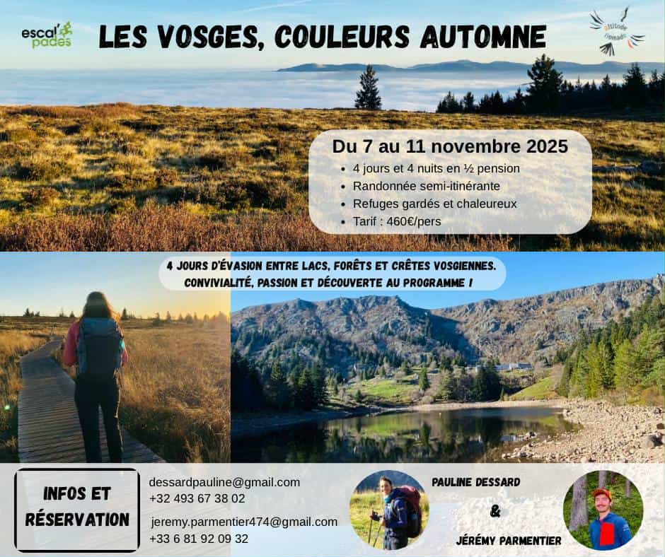 En partenariat avec Escal’pades, Jérémy Parmentier (Alsacien et amoureux des Vosges) et Pauline Dessard (d’Altitude Nomade) vous proposent un long week-end d’évasion dans le massif des Vosges!
